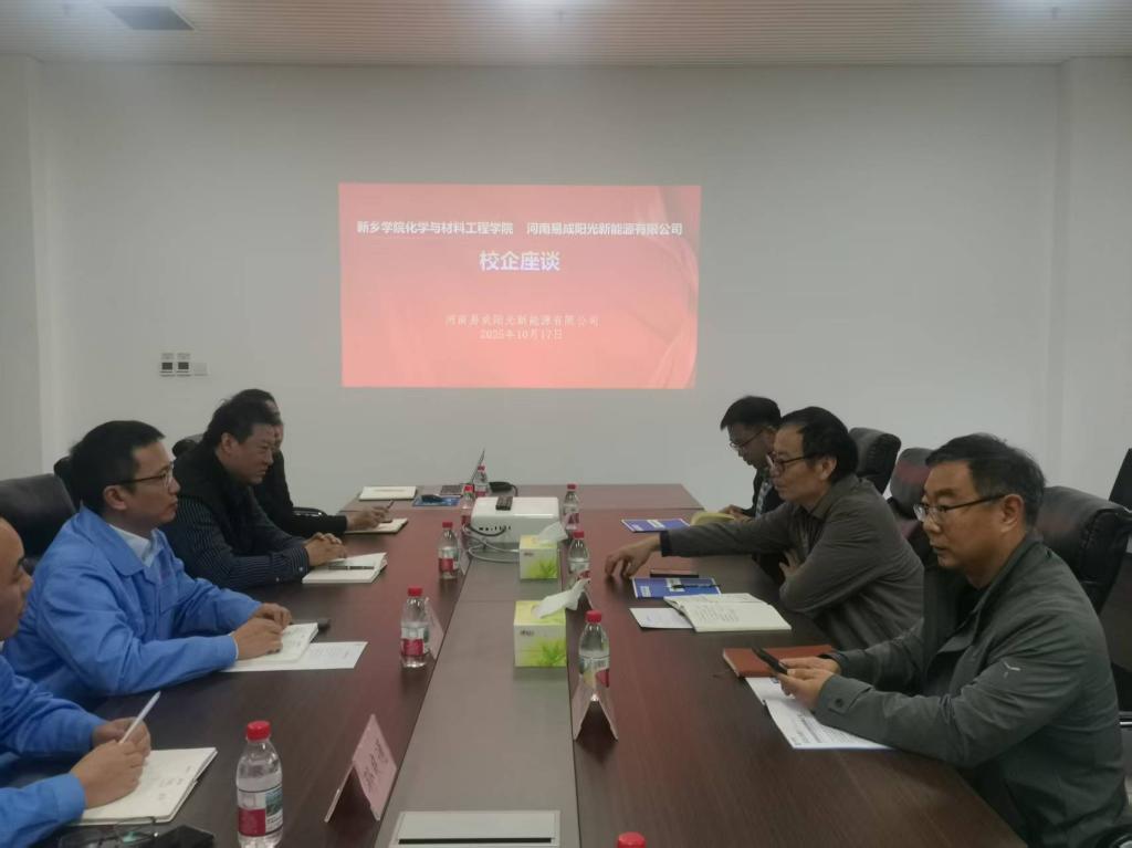 座谈会上,周浩董事长介绍了河南易成阳光新能源有限公司产品产能和市场定位。潘亚辉经理就产品应用场景、新品开发等情况进行详细说明。双方就下一步在公司职工岗位培训、材料检测、课题项目申报等方面达成共识,表明将深化合作,尽快落地相关项目。随后又深入生产线进行实地考察。