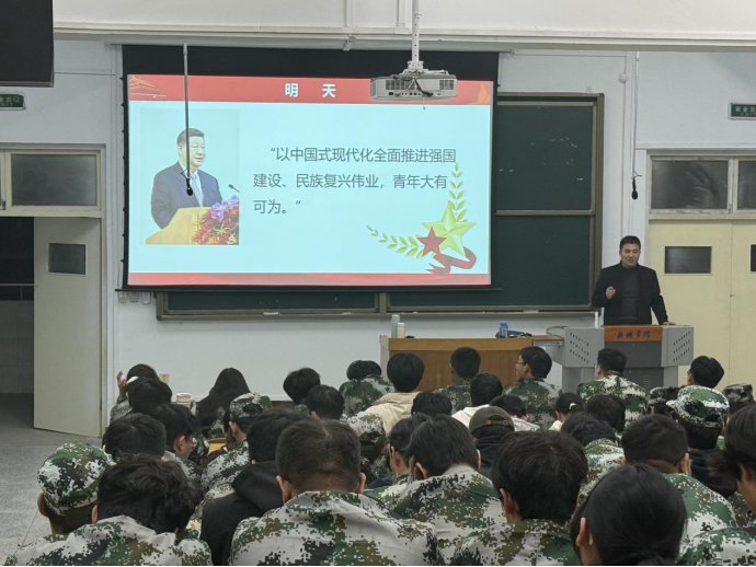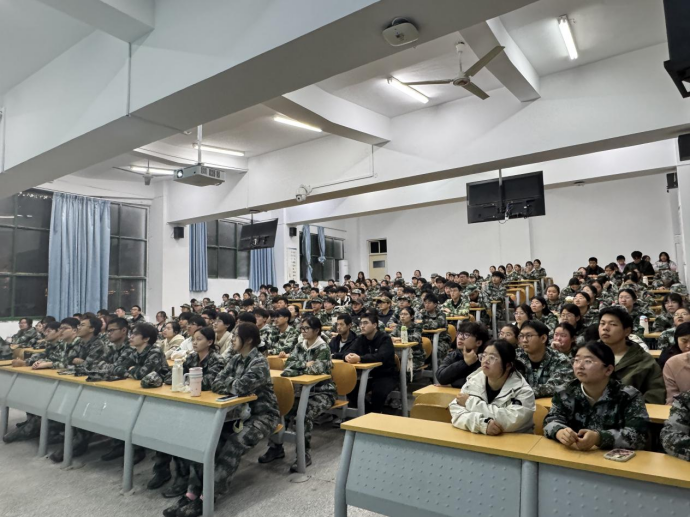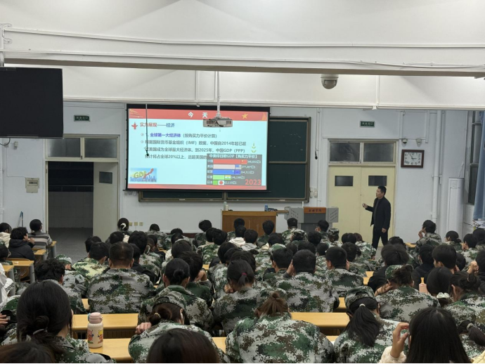 从秦始皇统一六国铸就的古代文明辉煌,到近代中国在抗争中艰辛求索的峥嵘岁月;从新中国成立后波澜壮阔的建设浪潮,到新时代举世瞩目的伟大变革,他的讲述为新生铺展了一幅鲜活的中国发展长卷。在军事与经济发展的专题分享中,他又用详实的数据展现祖国的崛起之路,鼓励新生,未来的中国必将在经济总量上实现新突破,从“技术追赶”升级为国际规则的“制定者”,以科技创新主导全球产业发展方向,稳步迈向世界顶级强国行列。
